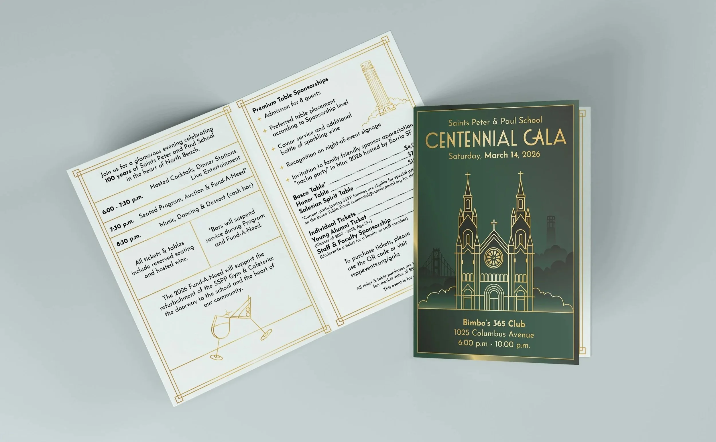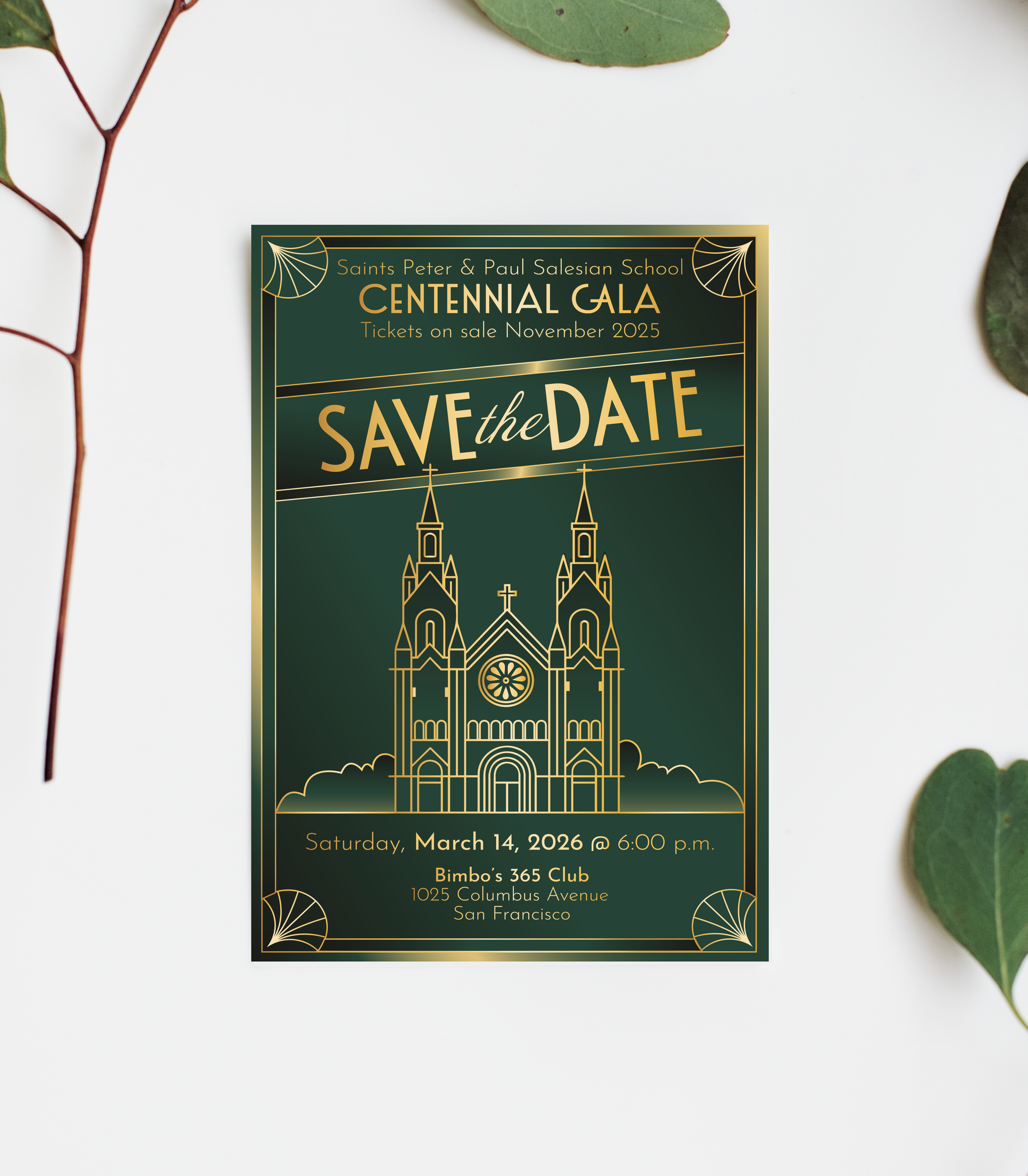 Saints Peter and Paul School in San Francisco invited me once again to design for their annual gala—this time for a particularly meaningful occasion: the Centennial Gala. Marking 100 years since the school’s founding in 1925, this milestone called for a visual direction that felt both timeless and forward-looking—honoring its history while offering a fresh, engaging experience for today’s attendees.
