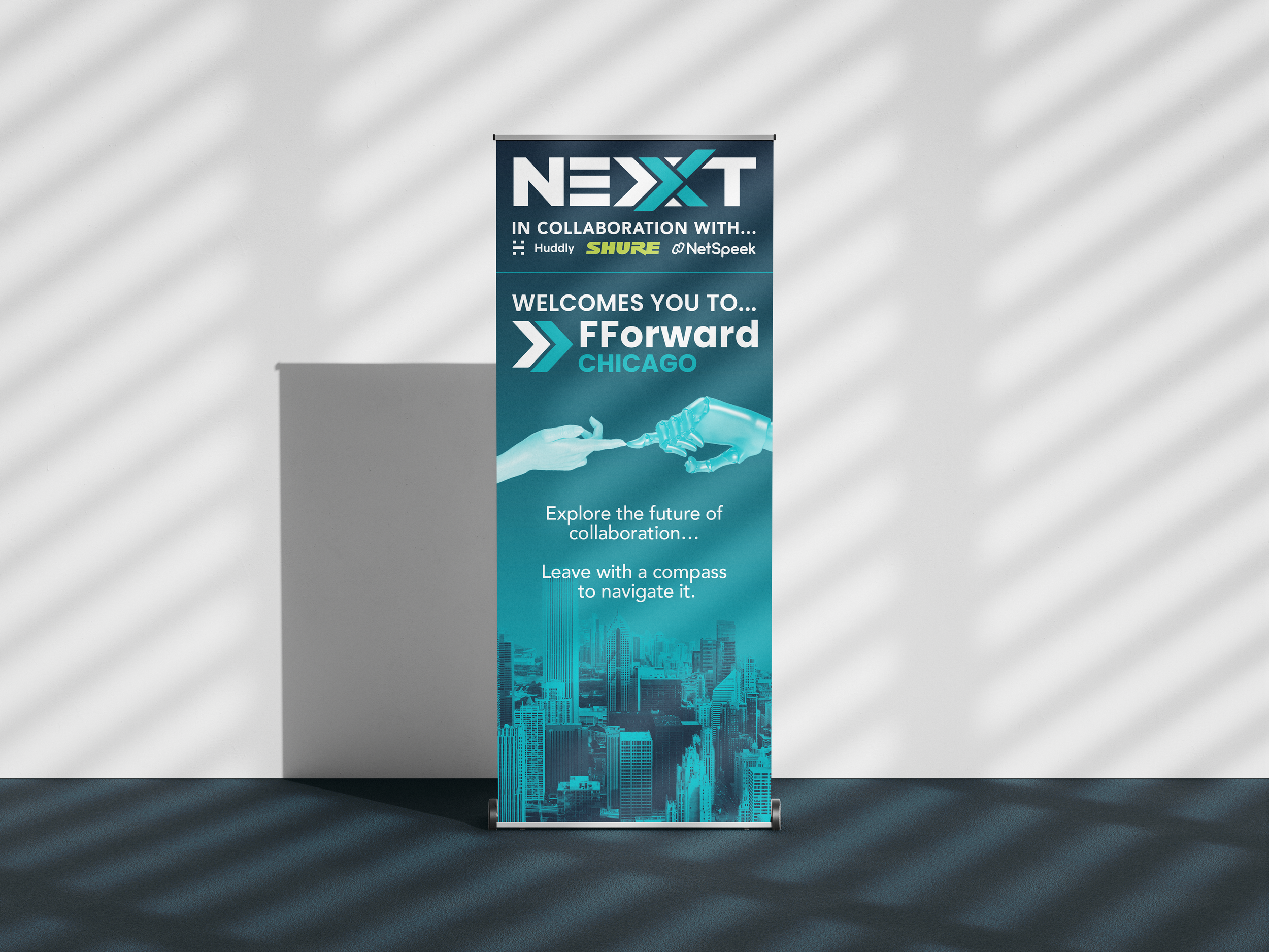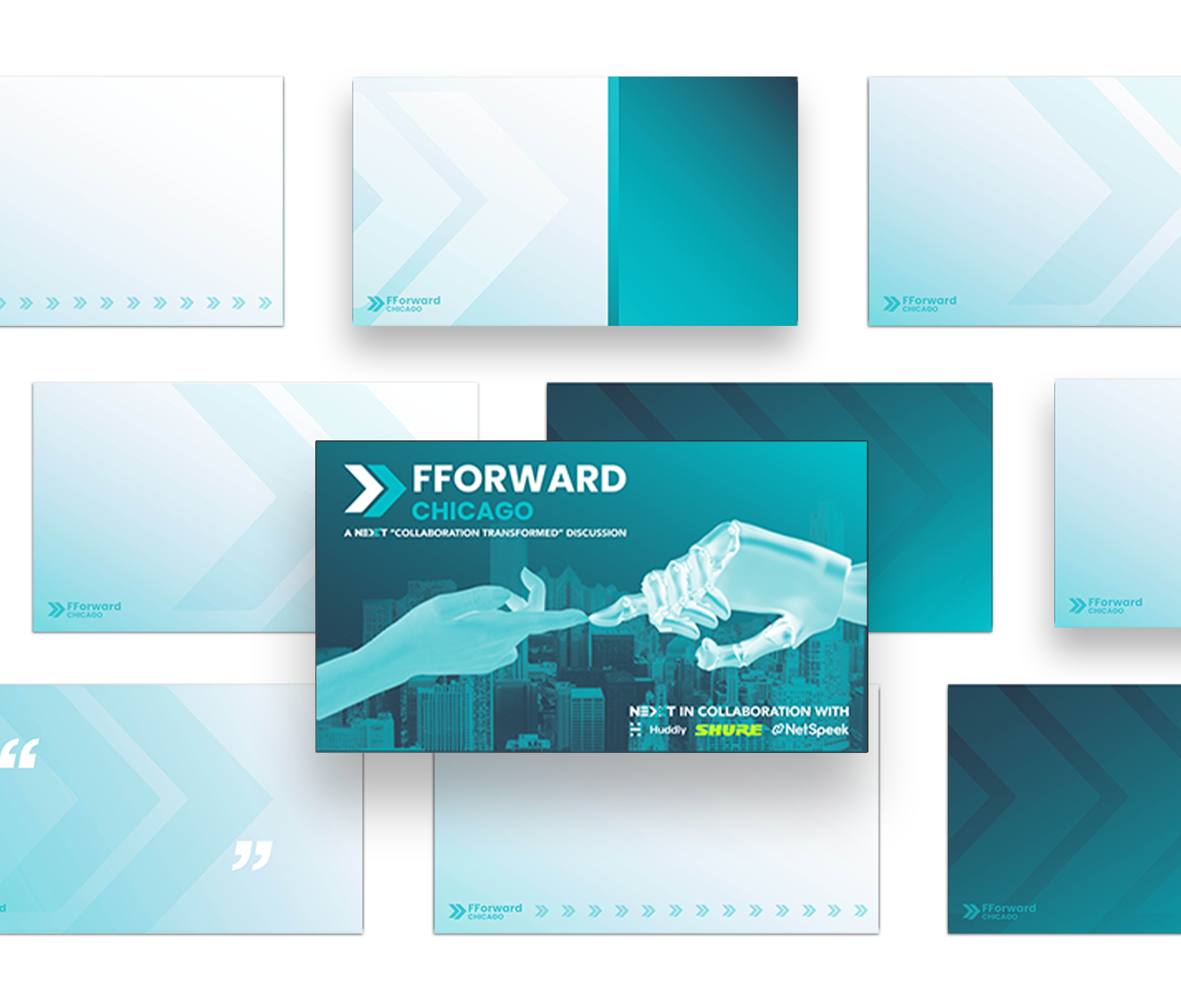 I collaborated with NEXXT, an AI company, to design a cohesive visual package for their FForward Chicago 2025 event. My work included creating the event logo, banner, and PowerPoint presentation, along with a range of supporting visual assets created with the direction of the company. The goal was to develop a clean, contemporary look that reflected NEXXT’s focus on innovation in the AI realm, while maintaining consistency across all event materials and existing graphics.